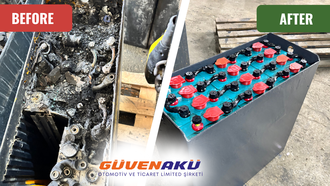 Güven Akü olarak traksiyoner akülerde bakım, tamir ve revizyon işlemlerini profesyonel şekilde gerçekleştiriyoruz.
